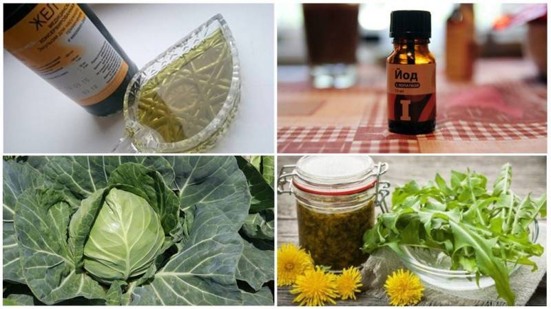 - Растирка из йода, аспирина и анальгина. На флакончик йода берут по пять таблеток аспирина и анальгина, после растворения используют для смазывания.