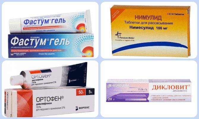 Из медикаментов используют нестероидные противовоспалительные препараты местного применения: «Дикловит», «Ортофен», «Нимулид», «Фастум гель», «Кетопрофен».