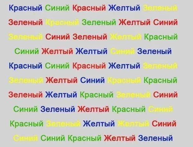 УПРАЖНЕНИЕ: Напишите на бумаге слова разными цветами. Максимально быстро повторяйте их, и без запинки
