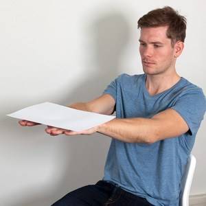 - Нужно соединить руки в ладонях, поднять их на уровне глаз. Затем сделать глубокий вдох и выдох. При выдохе одну руку надо опустить вниз на полпальца, при этом пальцами второй руки надо сжать фаланги пальцев первой руки. Затем поменять руки и снова сделать глубокий вдох и выдох, повторив предыдущие действия. Упражнение повторяют 10 раз.