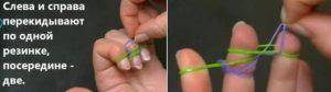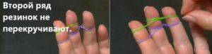 - Вторая сдвоенная резинка накидывается туда же, но не перекручиваясь.