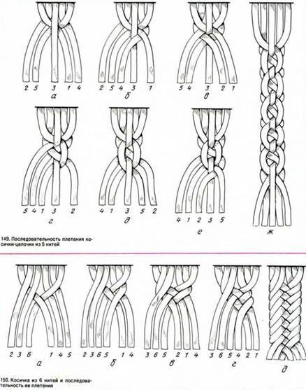 Во время плетения можно использовать от 5 до 9 ниток любой толщины