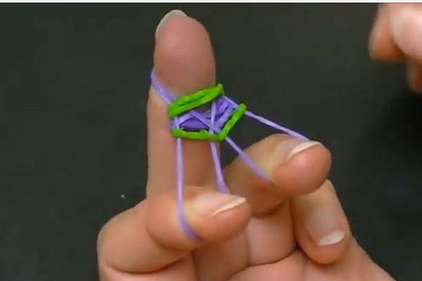 - Надевается третья пара, после чего в центр скидывают петлю с того пальца, на котором их 3.
