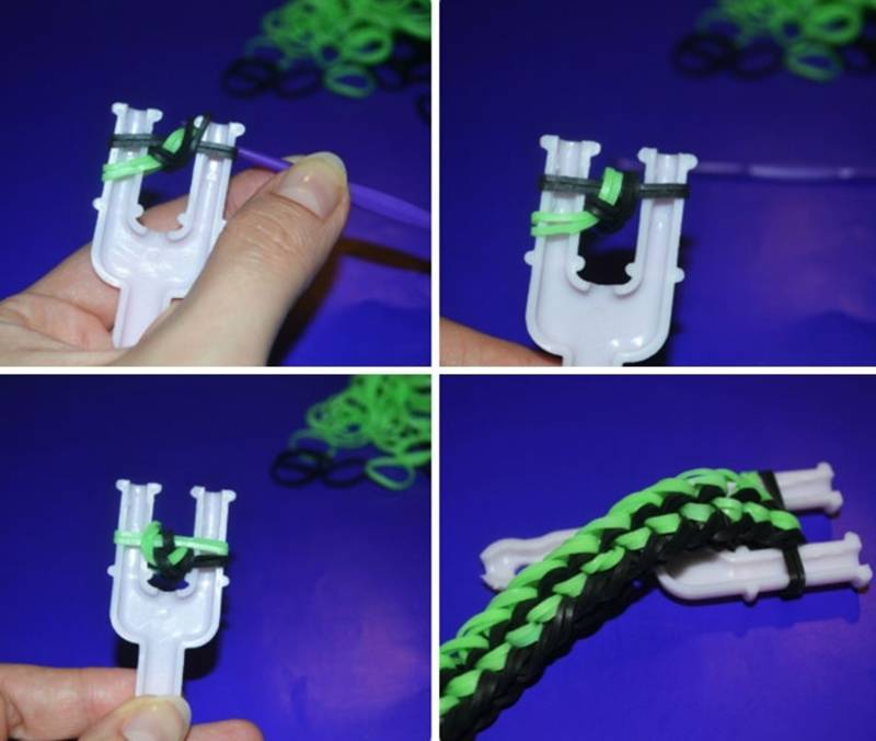 Инструкция, как сплести браслет из резинок с помощью рогатки