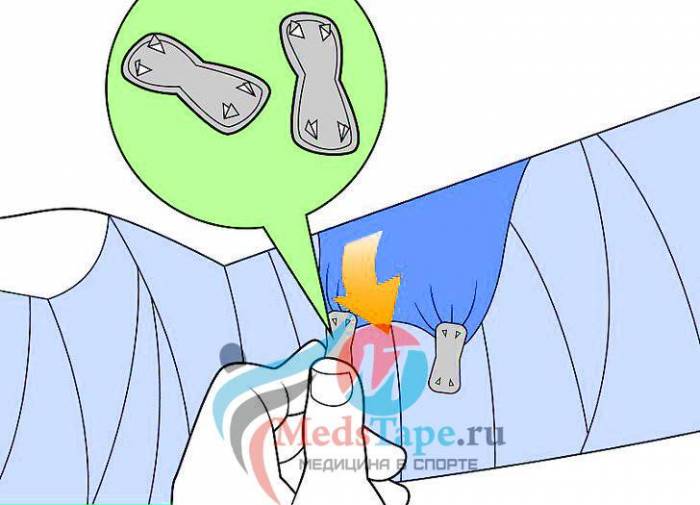 - Дальше вам предстоит закрепить свободные концы бинта. Как закрепить эластичный бинт? Обычно они идут в комплекте со специальными зажимами, либо же имеют клейкие концы.