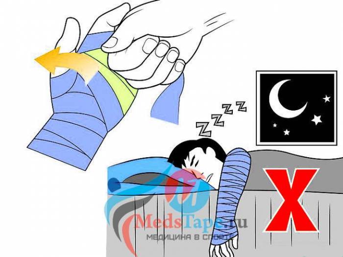 Не спите с перебинтованной рукой. Для некоторых видов травм ваш лечащий врач может порекомендовать специальные способы фиксации руки в ночное время. Чтобы выбрать подходящий метод для вас лично, посоветуйтесь с врачом.