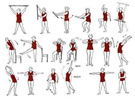 Упражнения способствуют тому, что мышцы со временем начинают оказывать адекватную реакцию на сопротивление тканей и преодолевают ее. Выполняются они в трех положениях: лежа на спине, сидя на стуле и стоя.