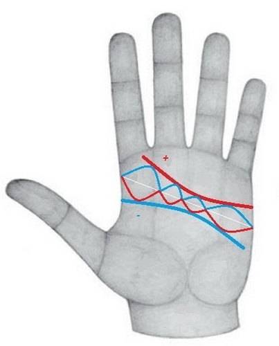 Так действует короткая линия ума, возвращая индивидуума на землю. Также им трудно дается долгосрочное планирование. Разность линий способствует противоречивости характера: то их бросает в огонь страсти и чувственности, то в лед холодности и отчуждения.