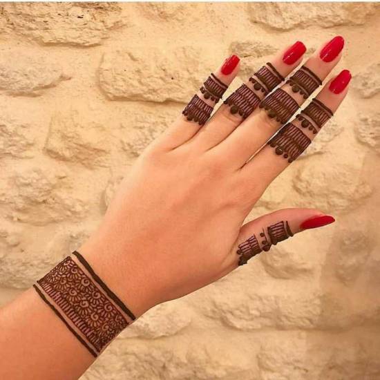 Браслеты могут соединяться с рисунками на тыльных сторонах кистей и мехенди на ладонях или представлять собой независимый узор.