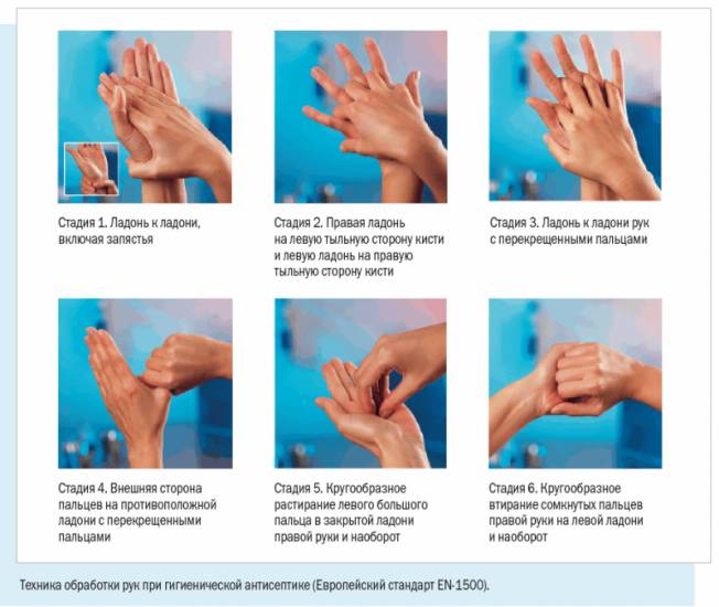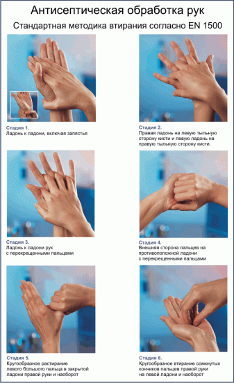 - мытье рук с мылом и водой или с другими средствами, содержащими и антисептические вещества;