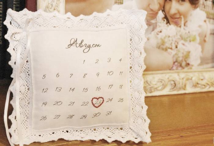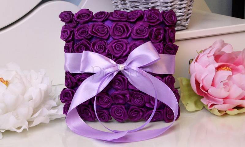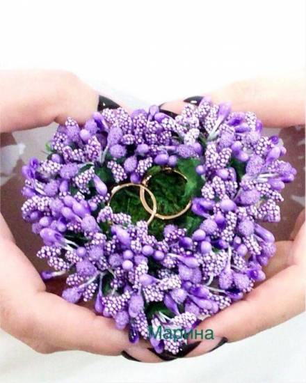 На подушечке для колец, сделанной с любовью и своими руками, приятно будет сфотографировать обручальные кольца и хранить их до часа Х.