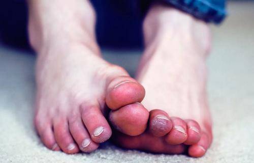 - Ношение узкой и неподходящей по размеру обуви. Проблема возникает из-за нарушения кровообращения. Дополнительными симптомами являются отек и боль. Неудобная обувь чаще становится причиной поражения большого пальца и мизинца, так как они находятся ближе к краям.