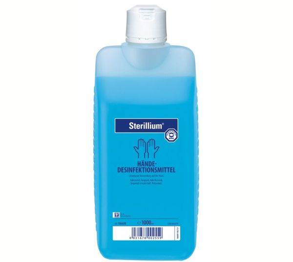 Стериллиум. Спиртосодержащий гель-антисептик длительного действия. Обладает бактерицидным, фунгицидным, противовирусным эффектом, уничтожает вирусы гриппа, COVID-19, аденовирусы, туберкулезную палочку, стафилококки. В состав входит глицерин, смягчающий кожу рук. Прозрачный раствор голубого цвета с приятным запахом, не раздражает кожу. Сохраняет действие до 1 часа на коже рук и до 3-х часов – в перчатках.