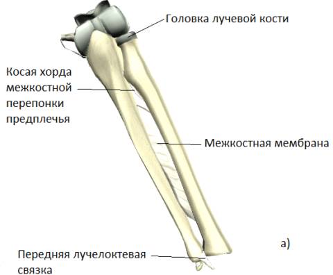 Включаются костные соединения прерывистого и непрерывистого типа, позволяющие совершать вращательные движения в предплечье. |