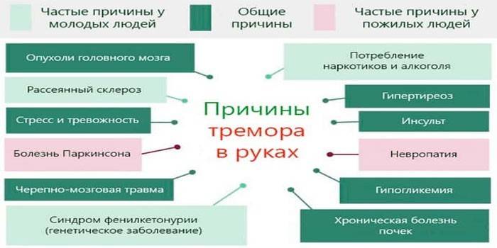Основная причина существования и возникновения тремора — наследственность, заболевание эндокринной системы, злоупотребление алкоголем или лекарствами.