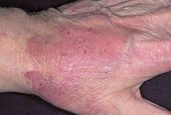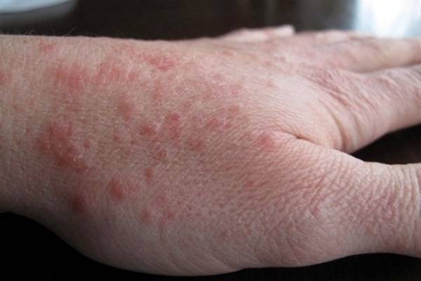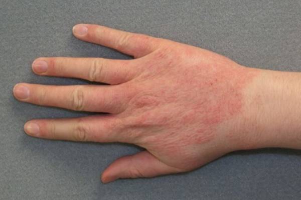 - раздражение на руках в виде сыпи красного цвета, зуда кожи,