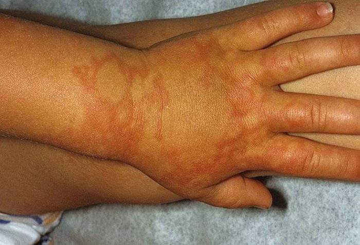 Из всех частей тела чаще всего аллергическая реакция развивается на тыльной стороне кистей. Особенно при контактном дерматите, возникающем из-за использования средств бытовой химии. Проявляется он сильнейшим раздражением, сыпью, воспалительной отечностью, болями.