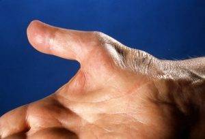 - атрофия мышц пораженного пальца;