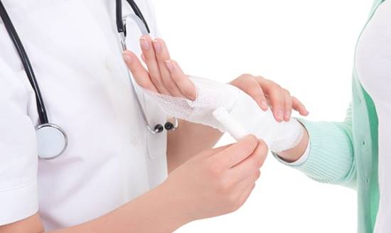 В первую очередь, больному необходимо прекратить выполнение работы. Пострадавшую конечность следует иммобилизовать, то есть обездвижить. Для этого руку лучше зафиксировать тугой повязкой из эластичного бинта. Чтобы облегчить боль, к кисти следует приложить холодный компресс или лед.