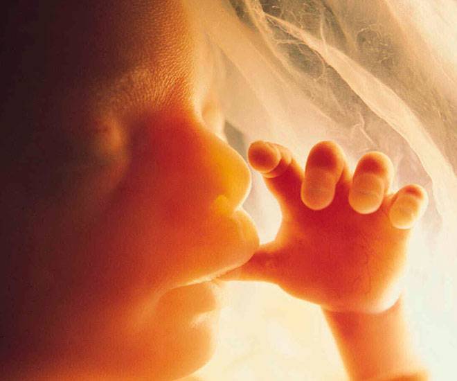 Ребенок в утробе уже начинает сосать палец. Забавно, но обычно в дело идет палец правой руки (в 90% случаев). Впервые явление наблюдается на 10 неделе беременности, это нормально и совсем не является патологией.