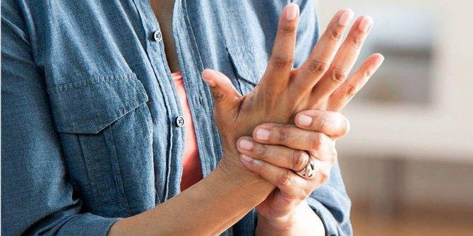 Характерная особенность артрита — симметричное поражение суставов на обеих руках.