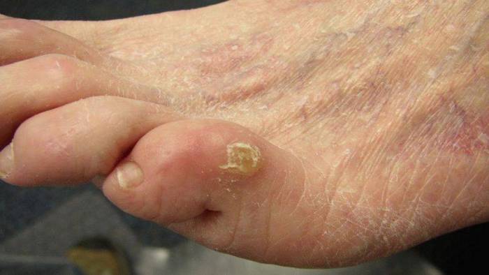 Со временем и вся стопа приобретает неправильную форму, это можно увидеть на фото. Разрастание внутреннее отодвигает в сторону другие пальцы, вызывая их деформацию.