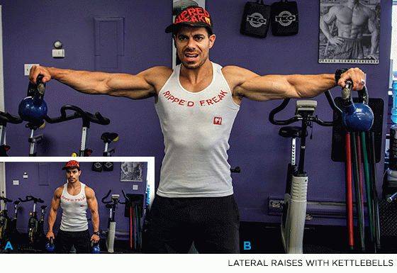 Этот трисет ориентирован в основном на задние дельтовидные мышцы, но также затрагивает медиальные и передние мышцы. Это упражнение отлично подходит для завершения тренировки. Помните, что вы должны использовать легкий вес для того чтобы поддерживать себя в нужной форме и выполнять упражнение максимально эффективно.