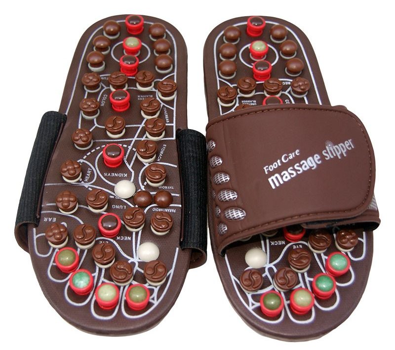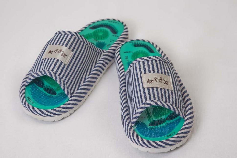 Массажными называют шлепанцы, предназначенные для легкого воздействия на акупунктурные точки на стопе. Считается, что это те нервные окончания, которые связаны со всеми важными органами тела человека.