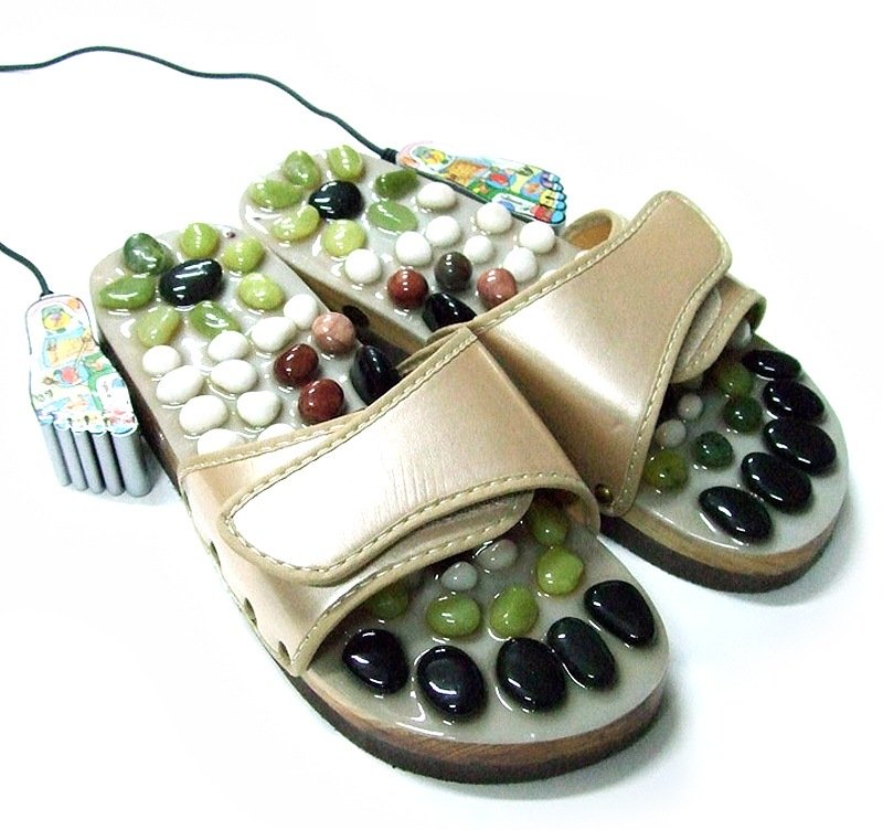 Для того, чтобы в течение дня на точки производился необходимый массаж, внутри шлепанцев наклеивают мягкие и приятные при прикосновении «камни» из полимера и силикона. Хотя впервые подобная обувь появилась в качестве спортивной в специализированных магазинах, на сегодняшний день шлепки относят скорее к домашним или пляжным вариантам. После тяжелого дня акупунктурный массаж принесет большую пользу, хотя ходить в них постоянно, с утра до вечера, не рекомендуется. А на пляже оздоровительный эффект от купания дополнится еще одним эффектом – массажным.